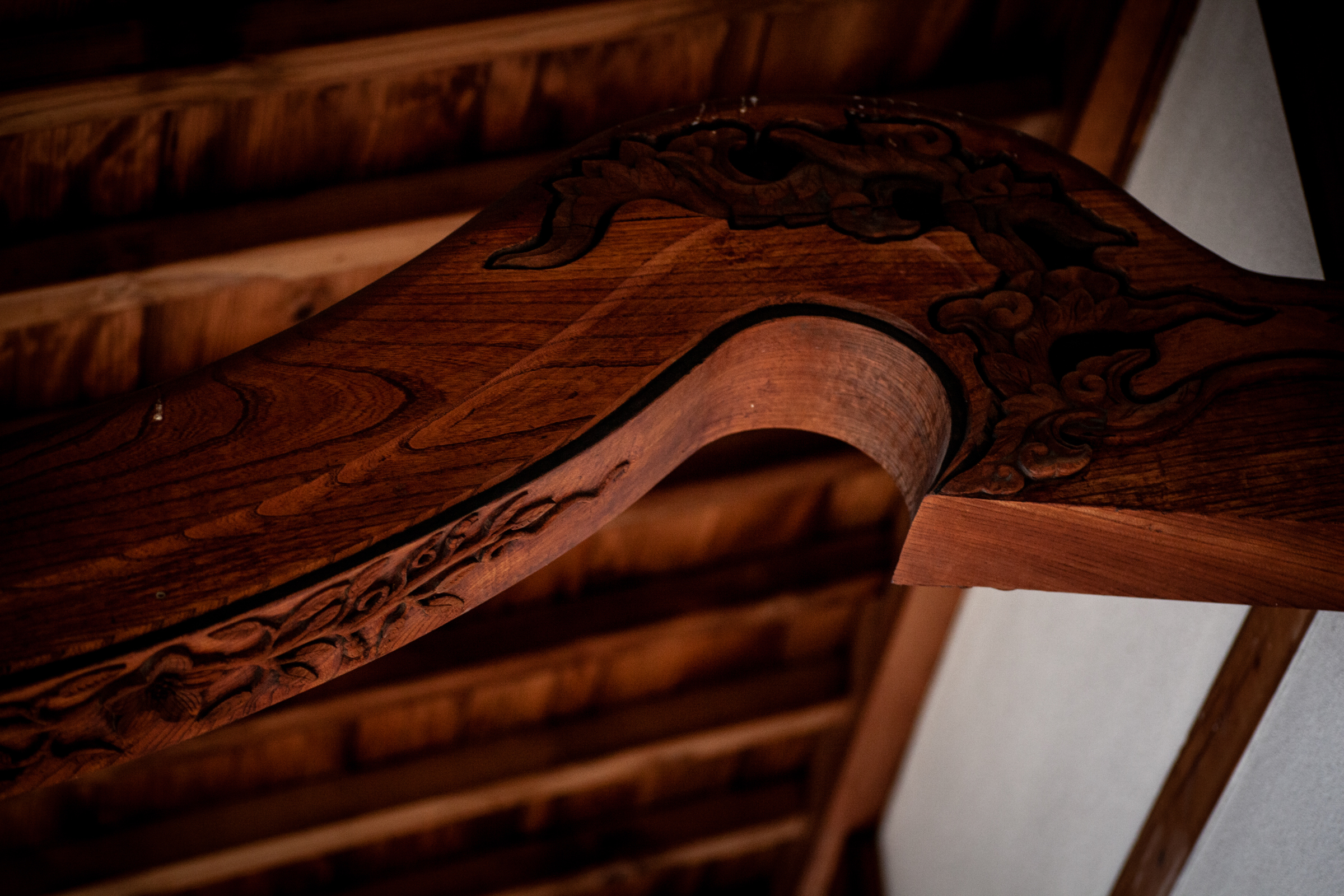 布袋腹という言葉のとおり、まるまるとしたお腹が特徴で、袋の中には、日常生活に必要なものを入れていたとされています。弥勒菩薩の化身として尊ばれ、吉兆の好画材として古来より様々な絵画で描かれています。