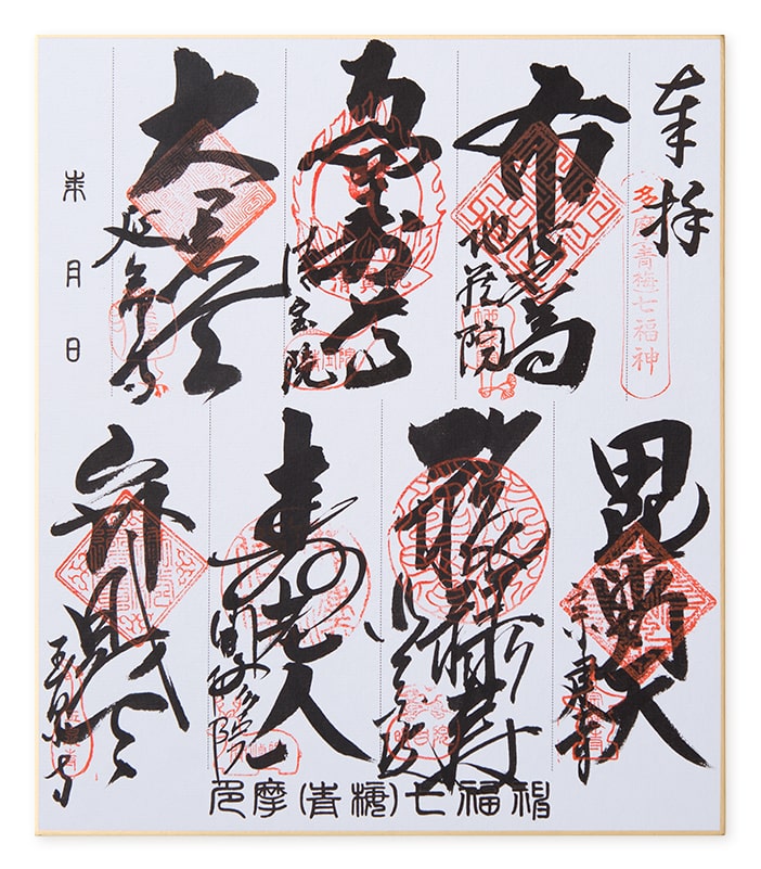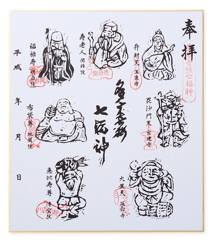 七福神が描かれた色紙に、各寺で朱印を入れていきます。
