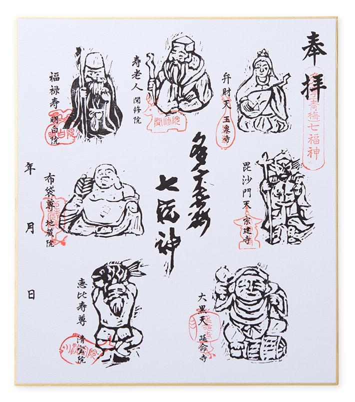 七福神が描かれた色紙に、各寺で朱印を入れていきます。